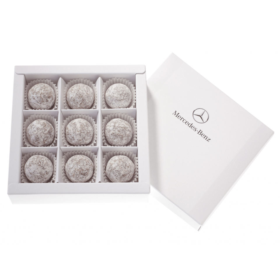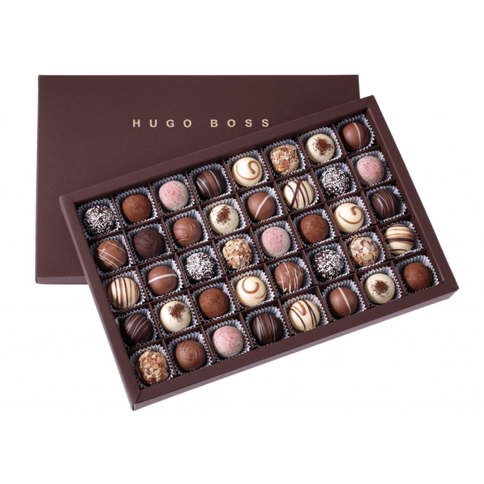 Votre boîte cadeau personnalisée de truffes et pralines avec embossage ou impression de logo