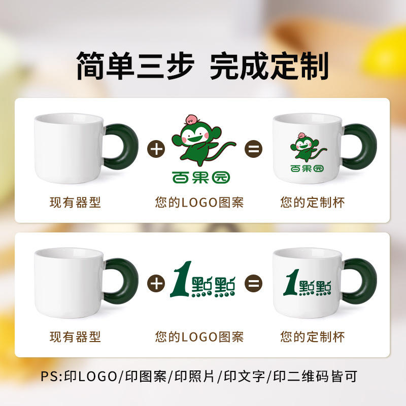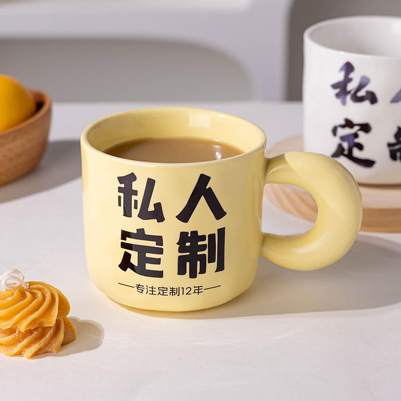 Mug en céramique personnalisable avec poignée en forme de lune, avec logo, photo, texte, cadeau d'entreprise, tasse individuelle
