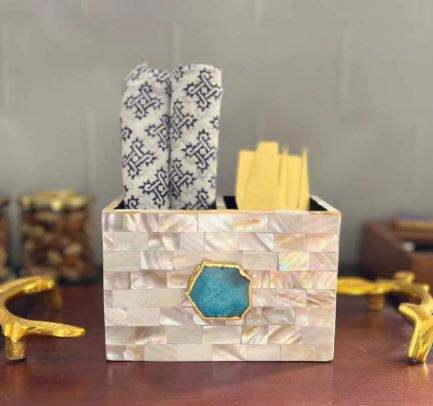 Porte-couverts écologique en nacre classique personnalisable à double étage pour cuisine et salle à manger Installation sur pied Artisanat artisanal