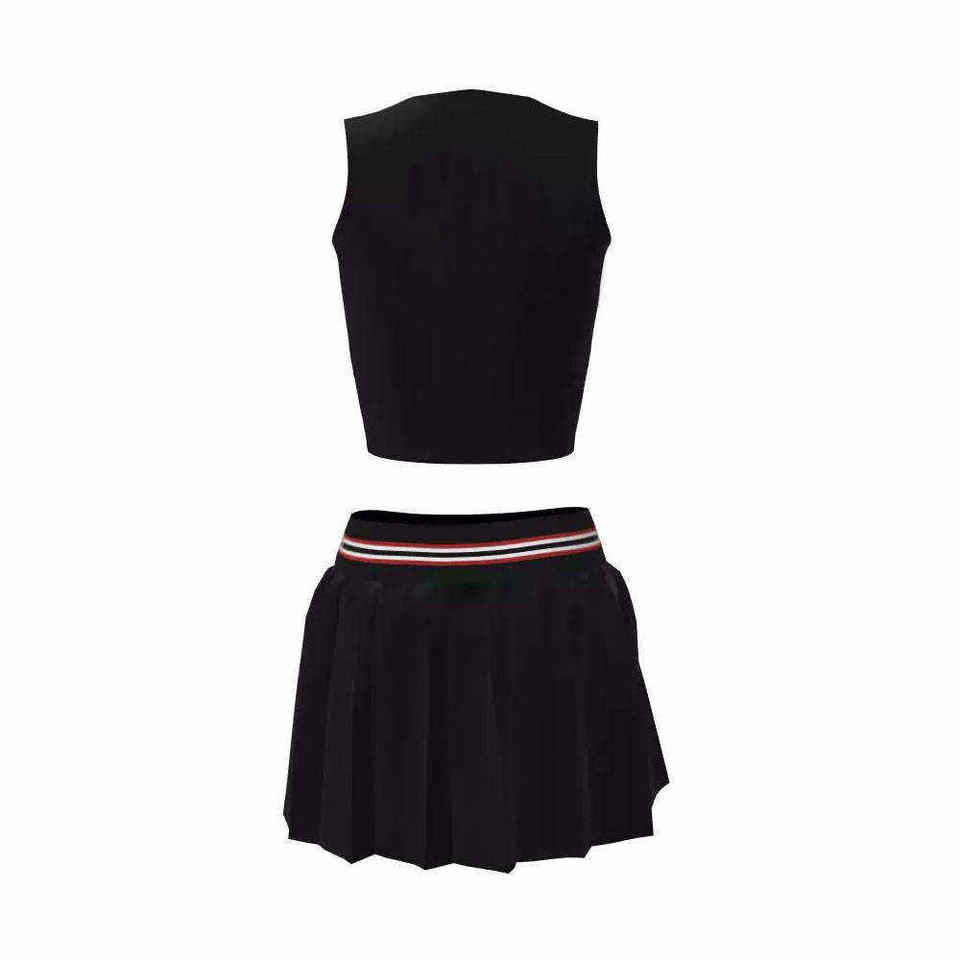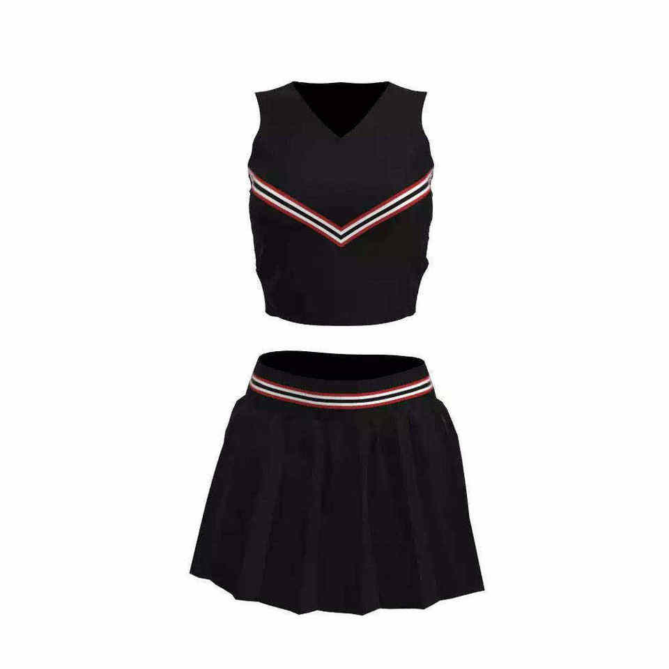 Uniforme de cheerleading personnalisable de haute qualité en polyester 100% - Ensemble deux pièces - Haut court sans manches à col en V - Jupe plissée
