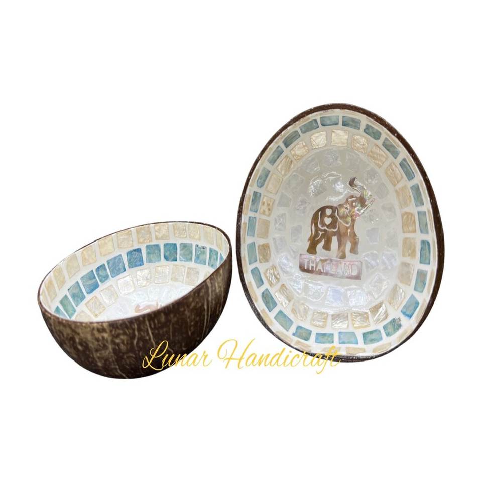 Bols en laque de noix de coco peints à la main de couleurs personnalisables Objets à motif décoratif pour l'exportation en vrac