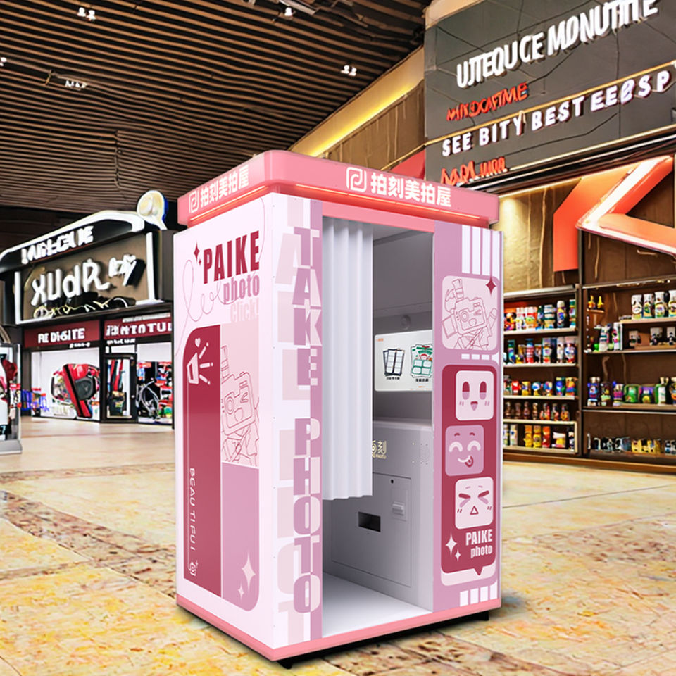 Station de selfie portable personnalisable de style coréen rouge pour centre commercial, kiosque photo, machine photo