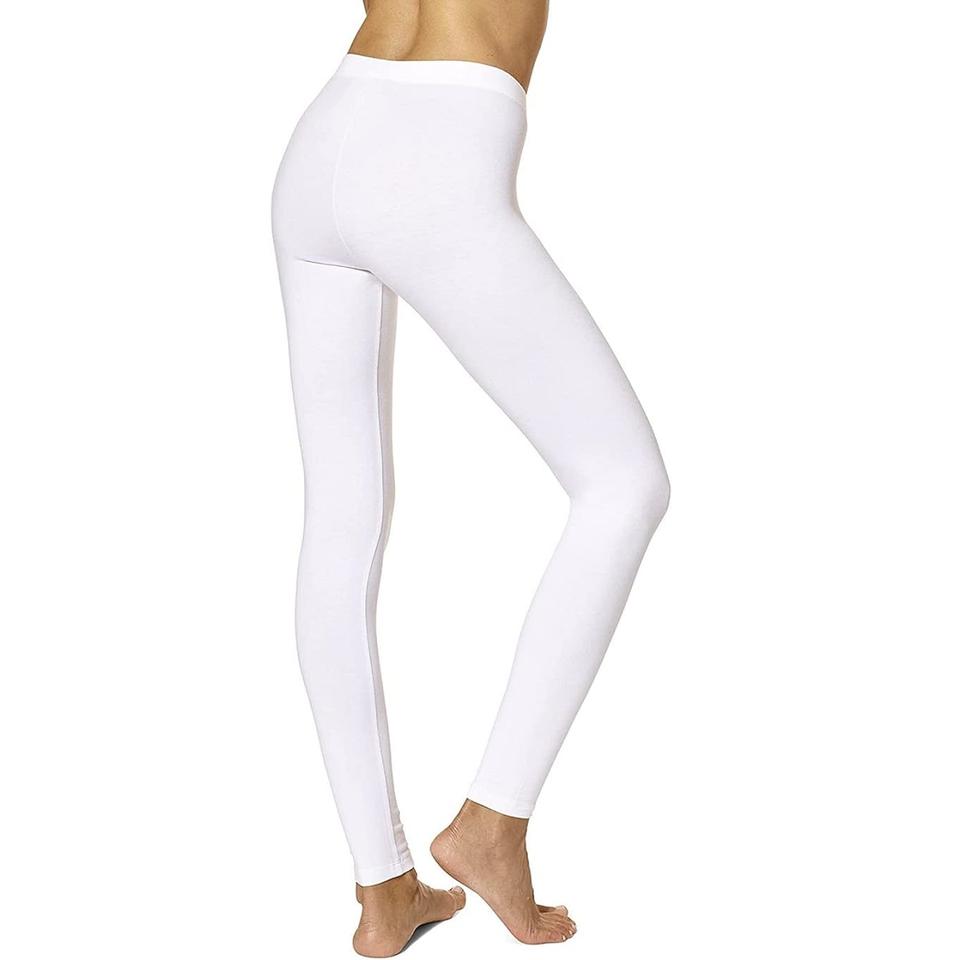 Leggings pour femmes en mélange de coton blanc uni, taille mi-haute, coupe skinny, avec logo à la taille, personnalisables, meilleur prix d'usine du Bangladesh