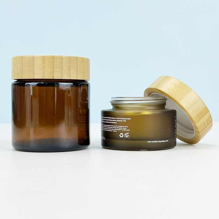 Pot en verre borosilicate ambré personnalisable pour crème exfoliante, avec couvercles en bambou, pour beurre corporel