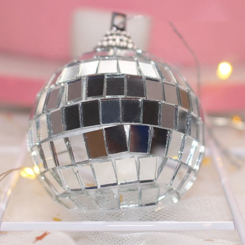Décorations de fête de scène d'arbre de Noël artisanal à motif de bricolage personnalisable petite boule à miroir disco mate