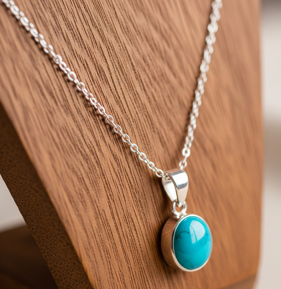 Chaîne délicate personnalisable en or 18 carats avec pendentif en forme de goutte, style bohème, en turquoise naturelle, cristal de guérison, tendance unisexe, certifié.
