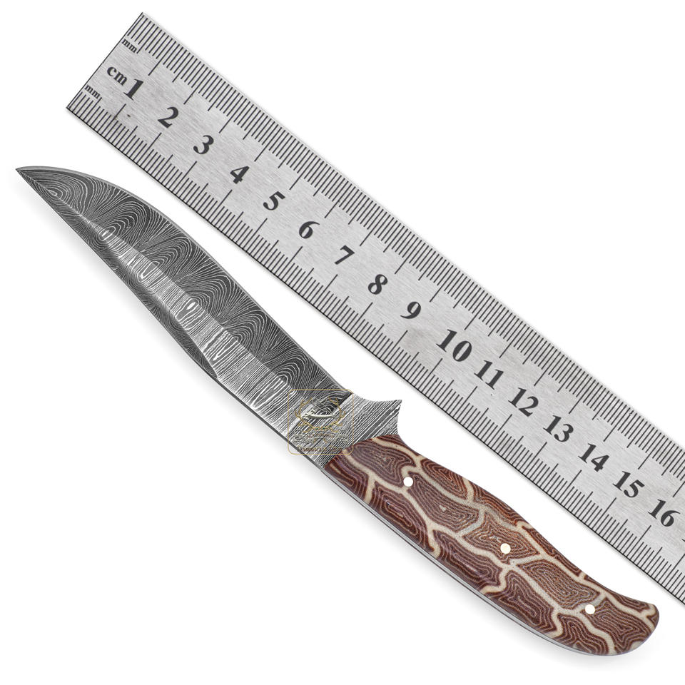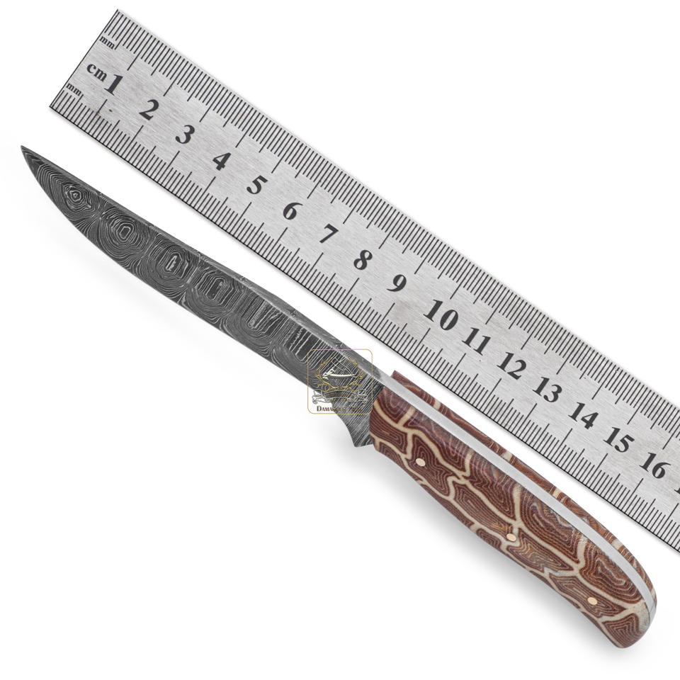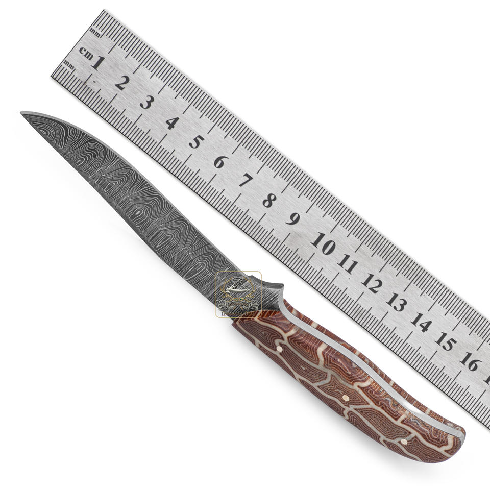 Couteau de chasse EDC personnalisable en acier Damas DD-DAM-555, 9 cm, pointe à clip, manche en micarta blanc brun, prise en charge OEM ODM
