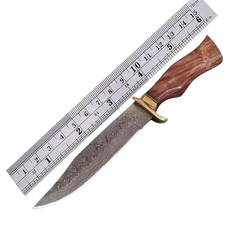 Couteau de chasse personnalisable en acier damas manche en corne naturelle lame fixe pour usage industriel extérieur OEM inclus