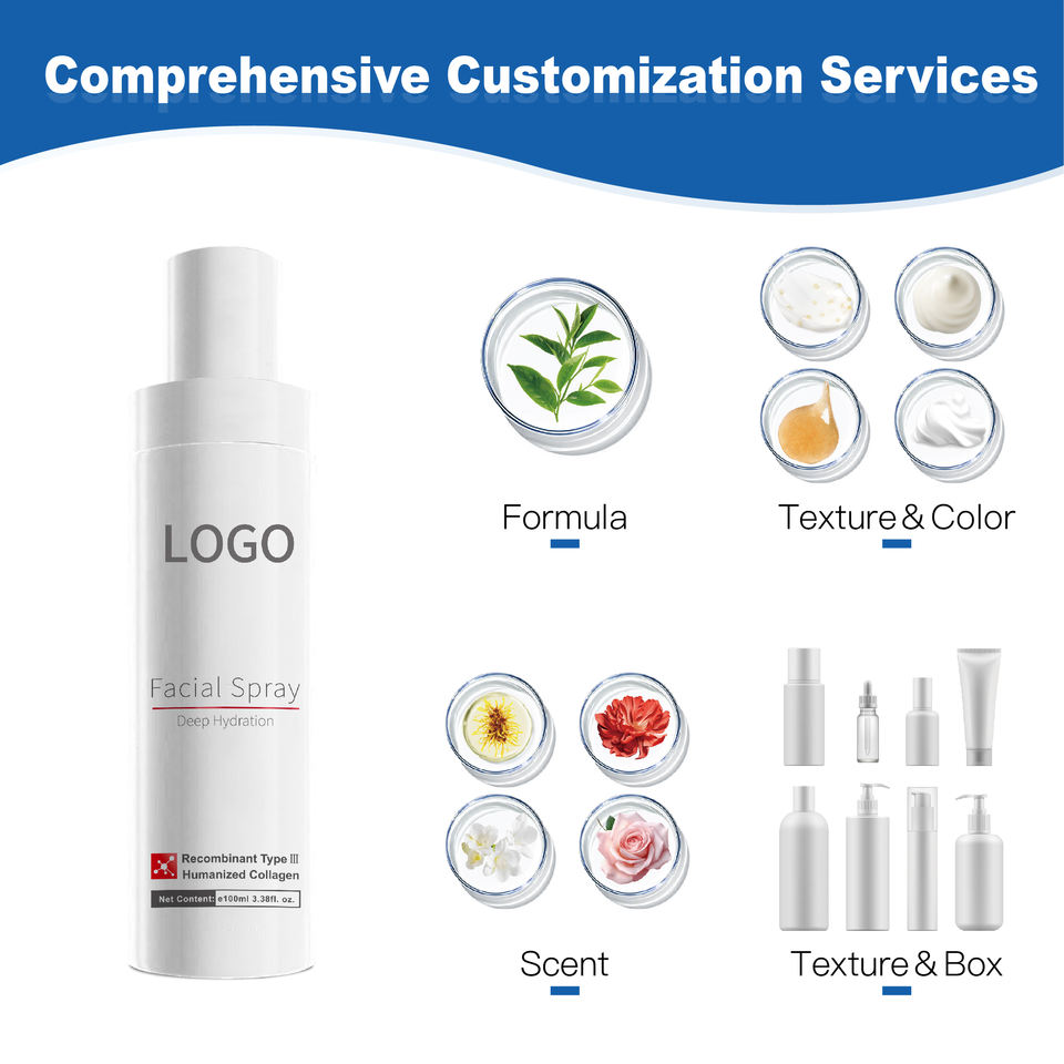 Sérum hydratant anti-âge pour le visage personnalisable, hydratant en profondeur, spray au collagène réparateur et apaisant avec fonction éclaircissante