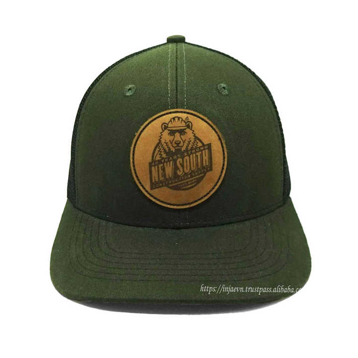 Casquette de camionneur en maille de coton avec patch en cuir au design personnalisable, chapeau de sport vintage décontracté et confortable, fabriqué au Vietnam