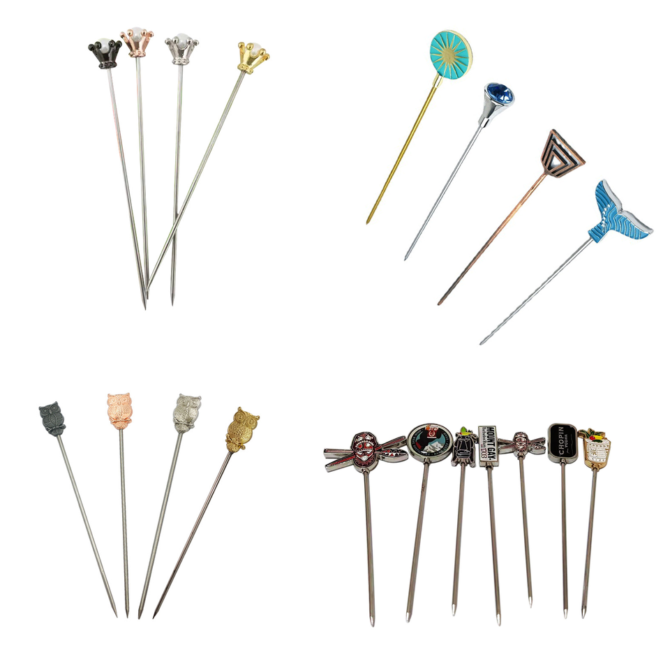 Bâtonnets de fruits en métal argentés et dorés réutilisables de différentes formes personnalisables pics à olives Martini pour l'Allemagne Victoria Bitter Glen