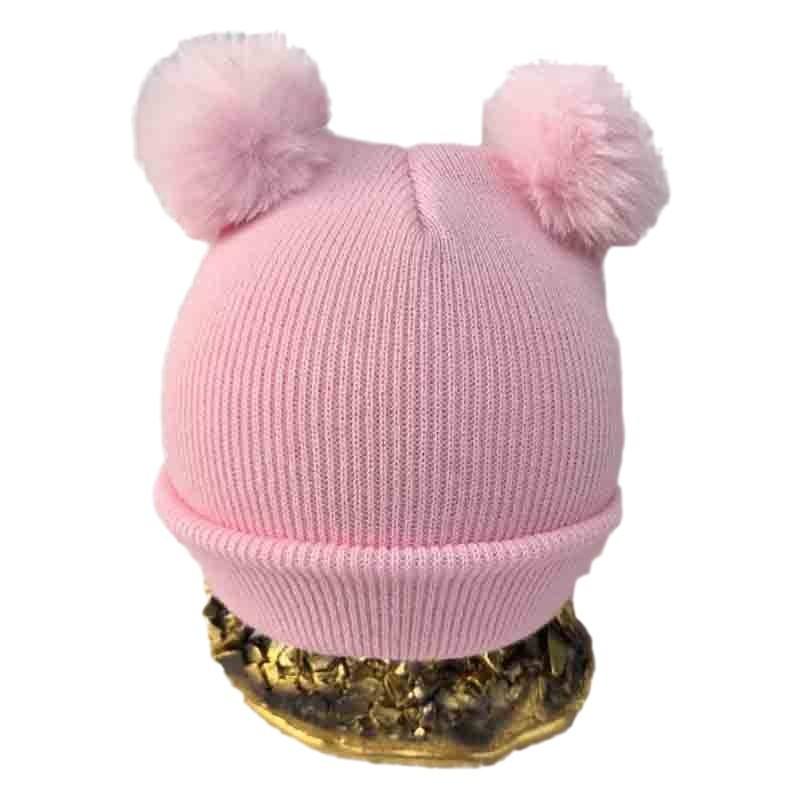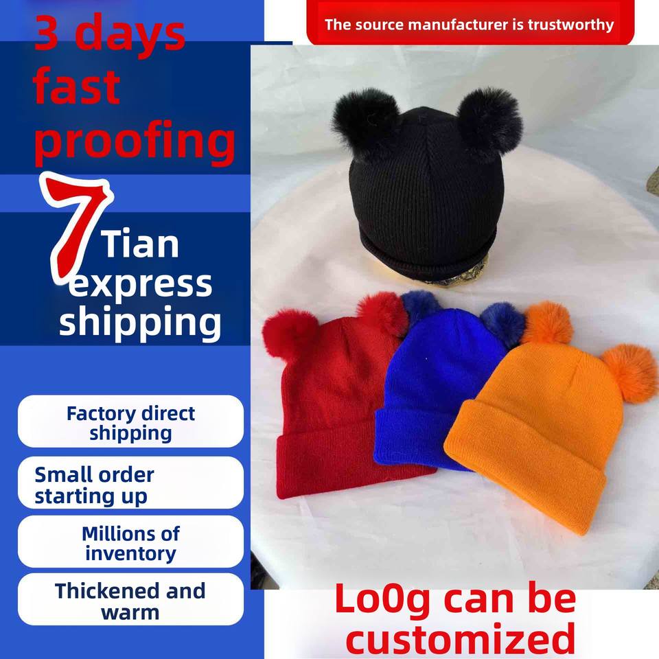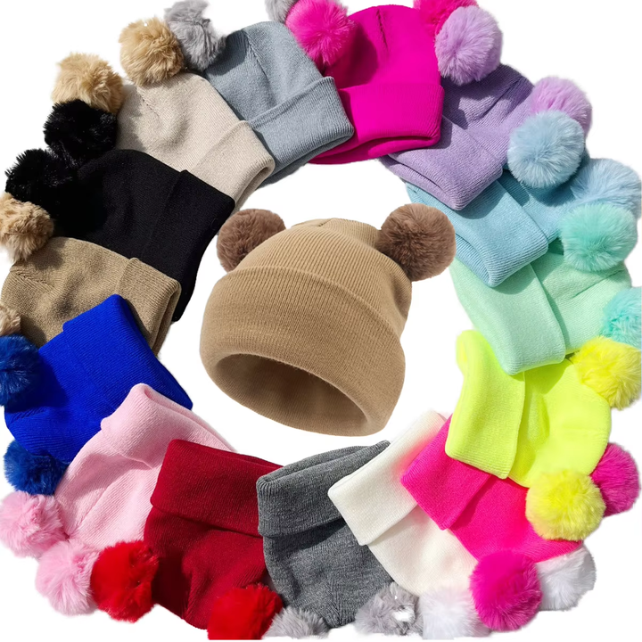 Bonnet personnalisable à double pompon pour enfants, bonnet d'hiver en acrylique tricoté avec pompon en fourrure pour tout-petits filles et garçons, motif de personnage