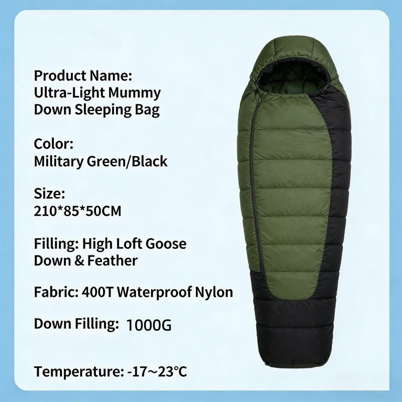 Sac de couchage momie ultra-léger en duvet d'oie avec remplissage personnalisable pour des aventures en plein air confortables