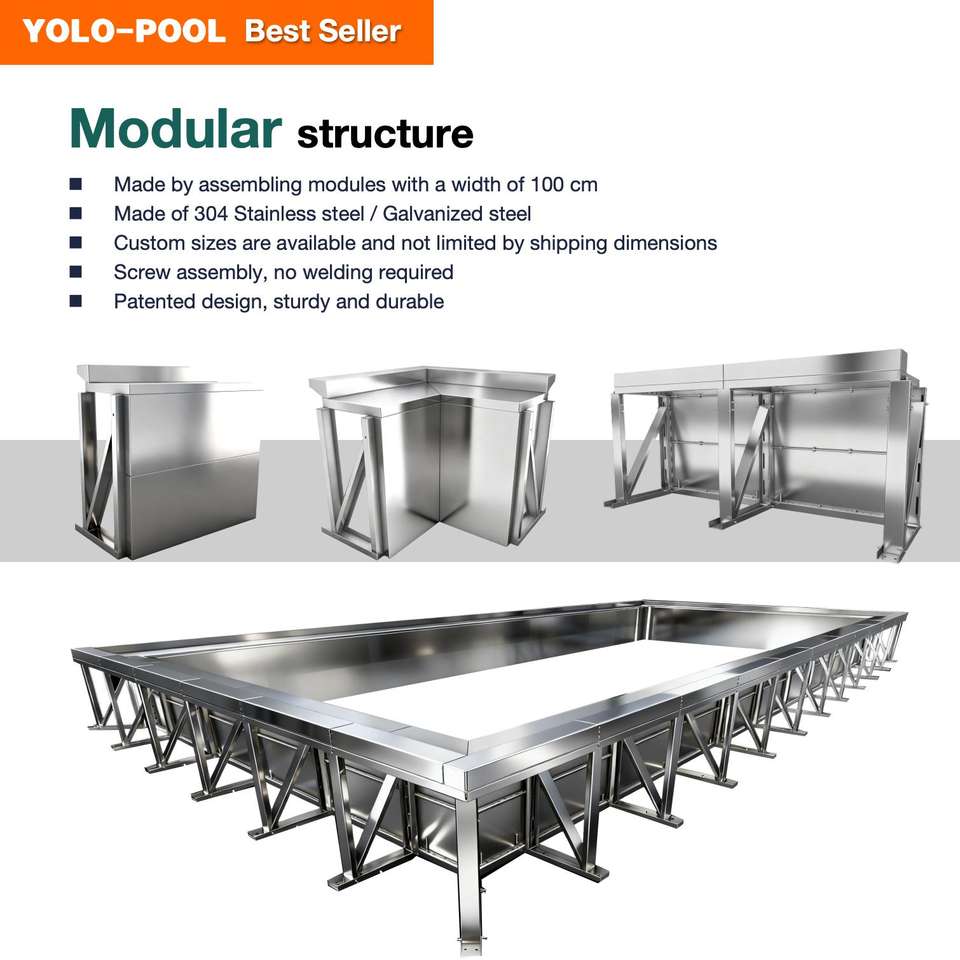 Piscine hors sol modulaire en acier inoxydable 304 durable et personnalisable | Installation rapide et facile, garantie de 5 ans pour les hôtels