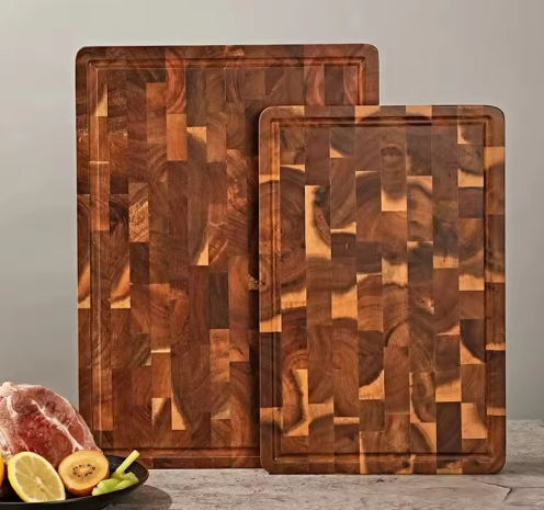 Planche à découper en teck massif de style écologique personnalisable, planche à découper géométriquement assemblée pour les restaurants, les hôtels, les supermarchés