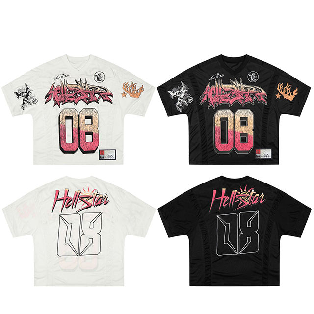 T-shirt de style rugby à manches courtes en jersey avec patchwork en maille imprimé et brodé personnalisable