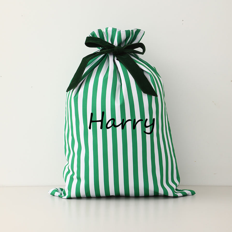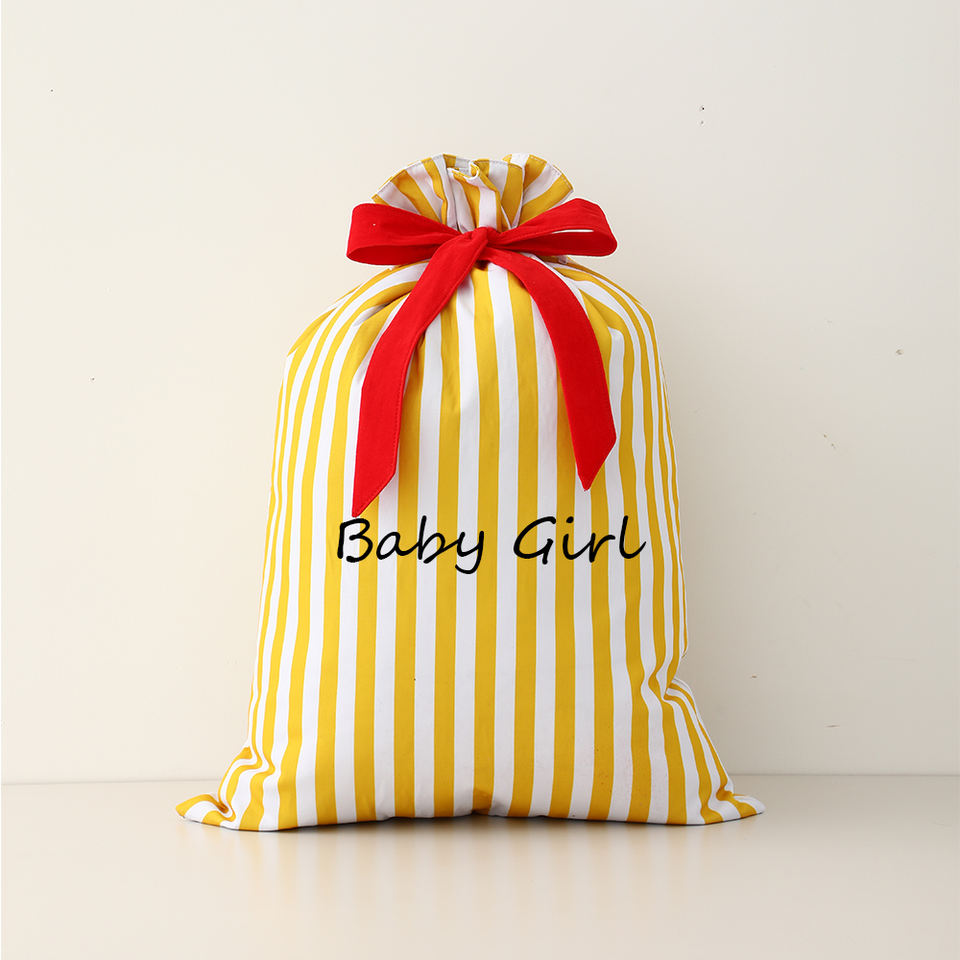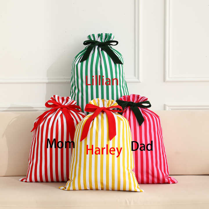 Personnalisable Broderie Nom Rayures Cadeau Père Noël Sacs Toile avec Velours Noeud Ruban Sac de Noël