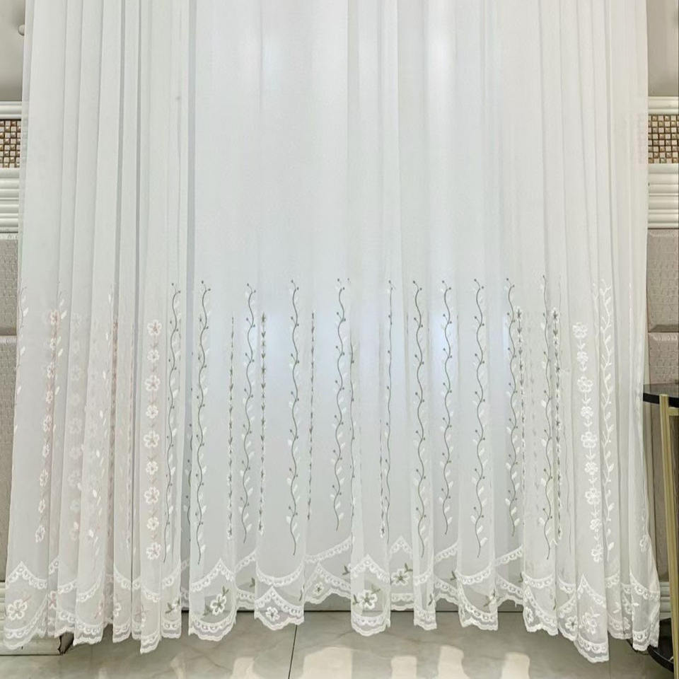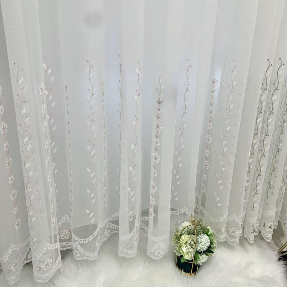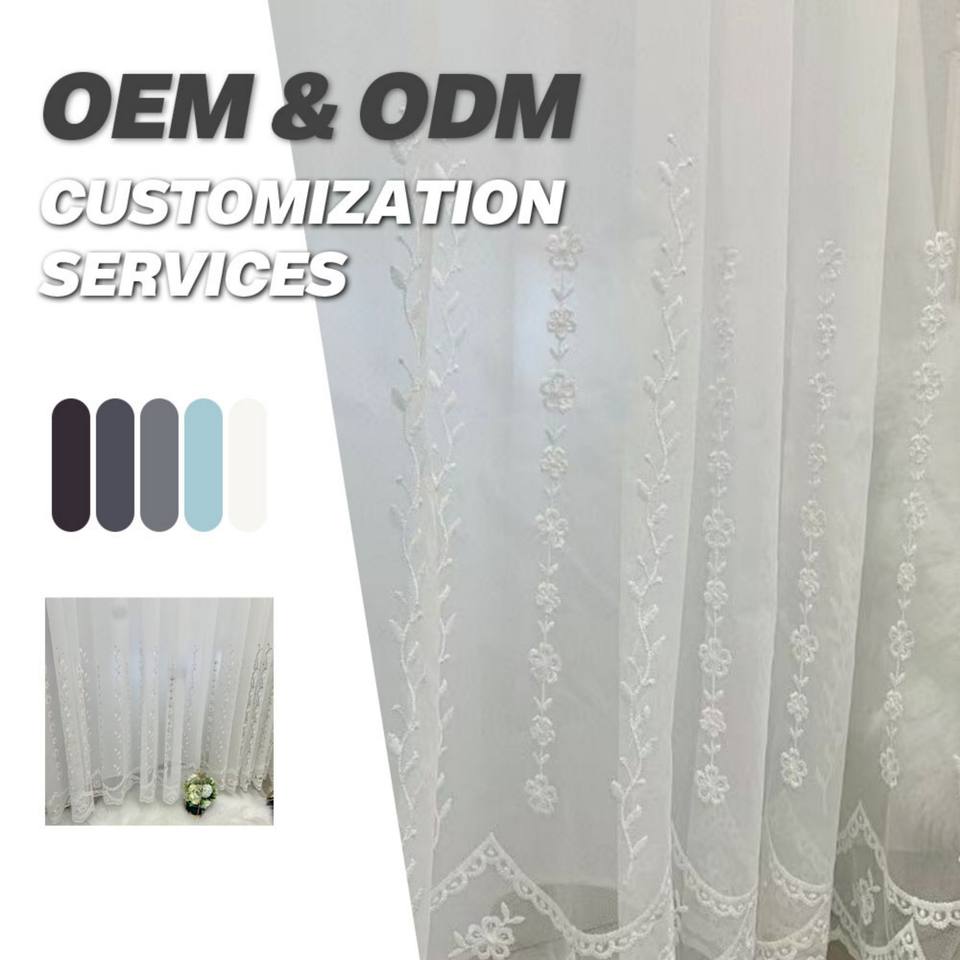Personnalisable Broderie Voile Sheer Matériel Rouleaux Rideau Tissu 100% Polyester Lin Look Tissu pour Rideaux Rouleau par Mètre