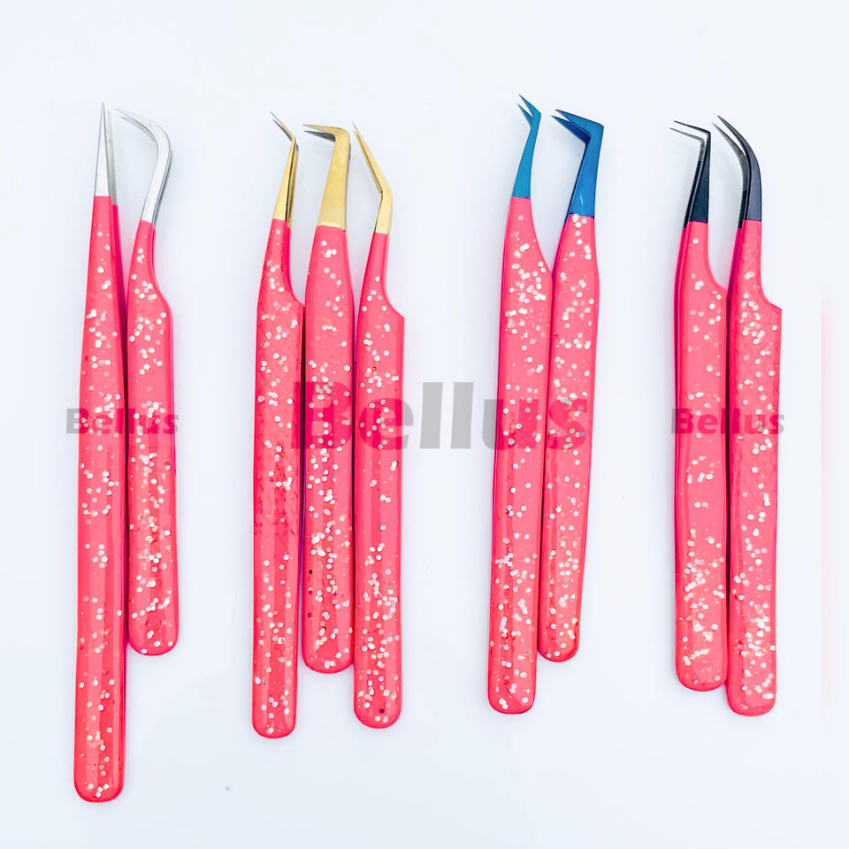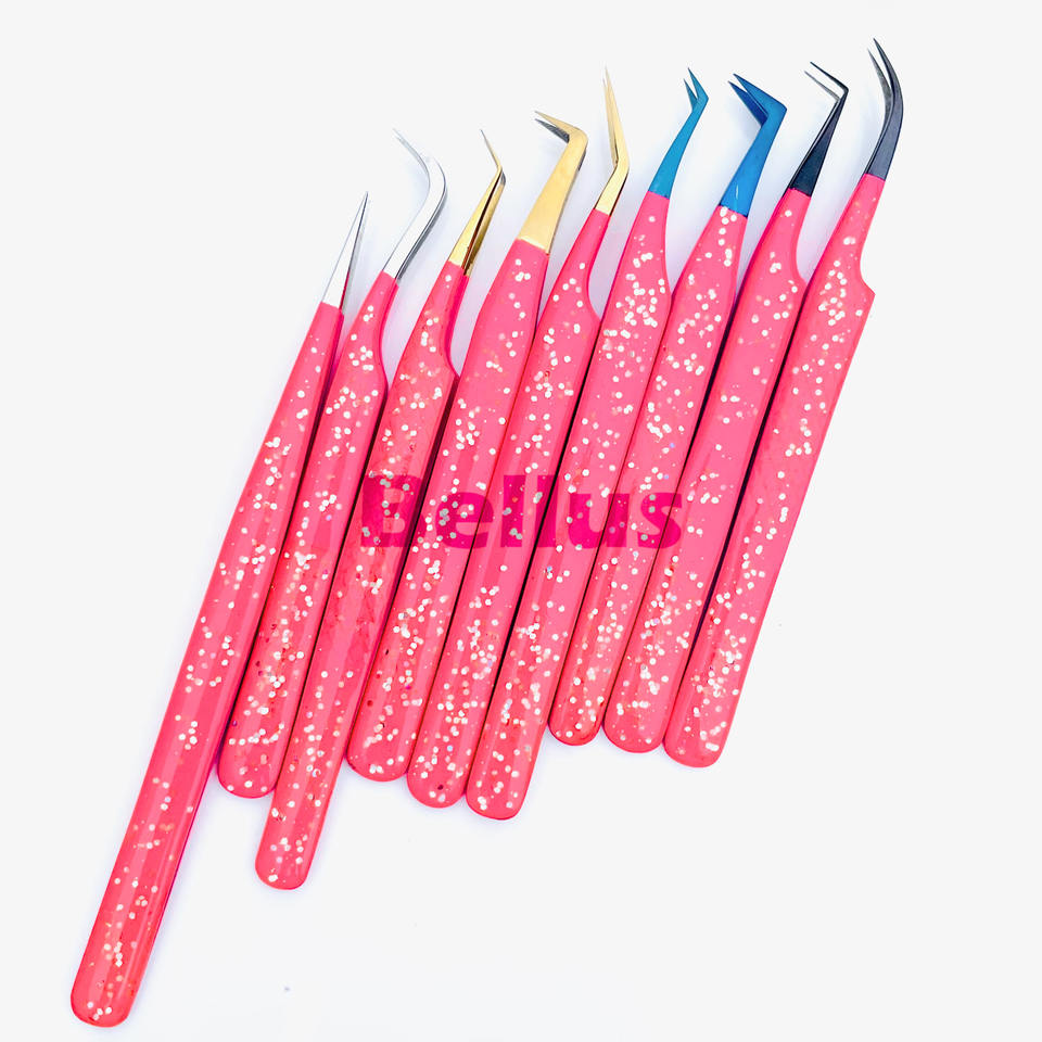 Personnalisable 45 degrés 90 degrés courbe botte pointe pointue fibre acier inoxydable extension de cils pince à épiler variété ensemble outils