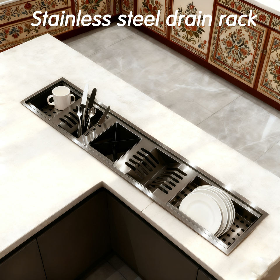 Égouttoir à vaisselle encastrable en acier inoxydable personnalisable pour évier simple, avec bac de récupération des eaux, fait main, pour armoire de cuisine ou plan de travail, toutes tailles