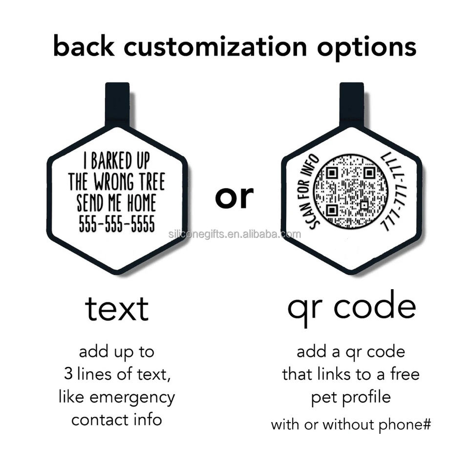 Personnalisable à la mode d'urgence médicale QR Code étiquette pour animaux de compagnie étanche hexagone blanc charme pour canin personnalisé dentelle Silicone