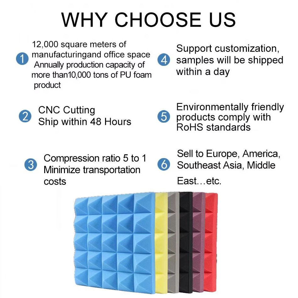 Panneaux acoustiques en mousse insonorisante ignifuge personnalisables en forme de pyramide pour les applications de salle et de studio