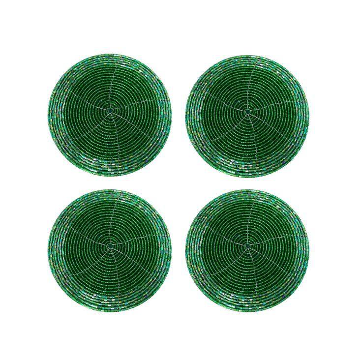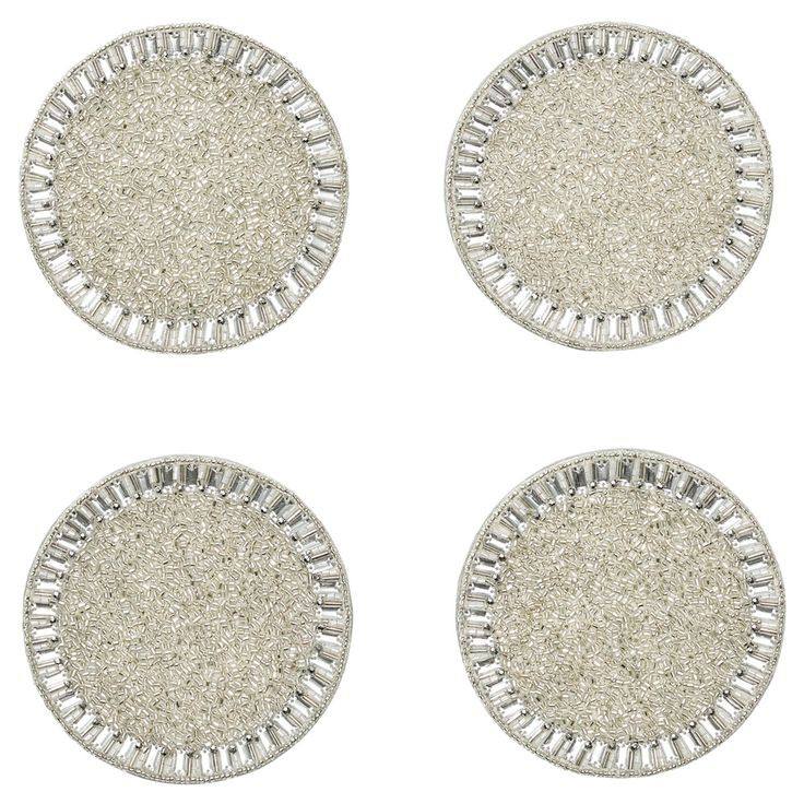 Ensemble de dessous-de-verre personnalisables brodés de perles de rocaille à motif floral, tapis/serviettes de table faits à la main pour mariage, Noël, fête, accent de table à faible coût