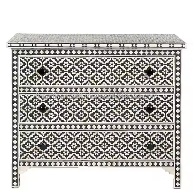ARTISAN CRAFT Commode à tiroirs floraux personnalisable avec incrustation d'os multicolore Rangement de table pour la cuisine