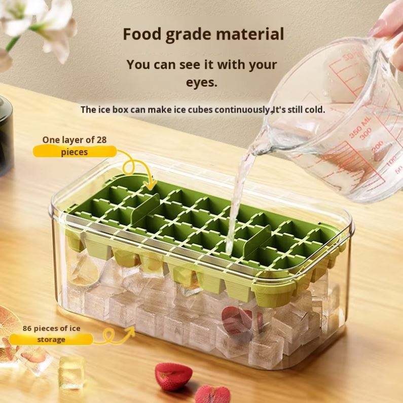 Customizable Food-Grade Plastic Ice Cube Mold Box Sustainable Homemade Refrigerator Ice Tray with Press Lid Summer Gadget