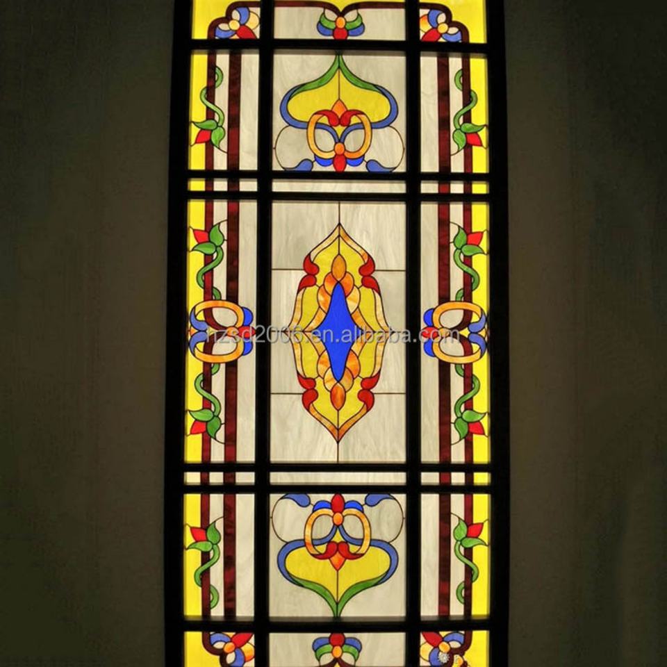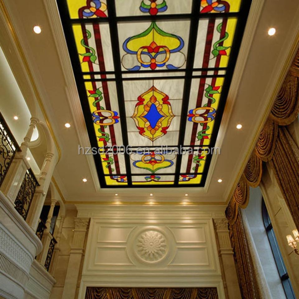 Customizable French Style Tiffany Iron Frame Stained Glass Ceiling Light Factory Hollow Church Skyline Decoration Decorative