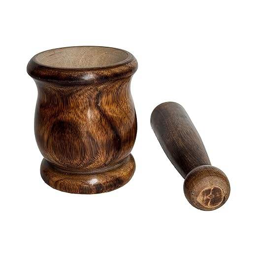 Mortier et pilon en bois fonctionnels personnalisables pour la préparation de pesto frais, de salsa et de mélanges d'épices avec une extraction complète des arômes