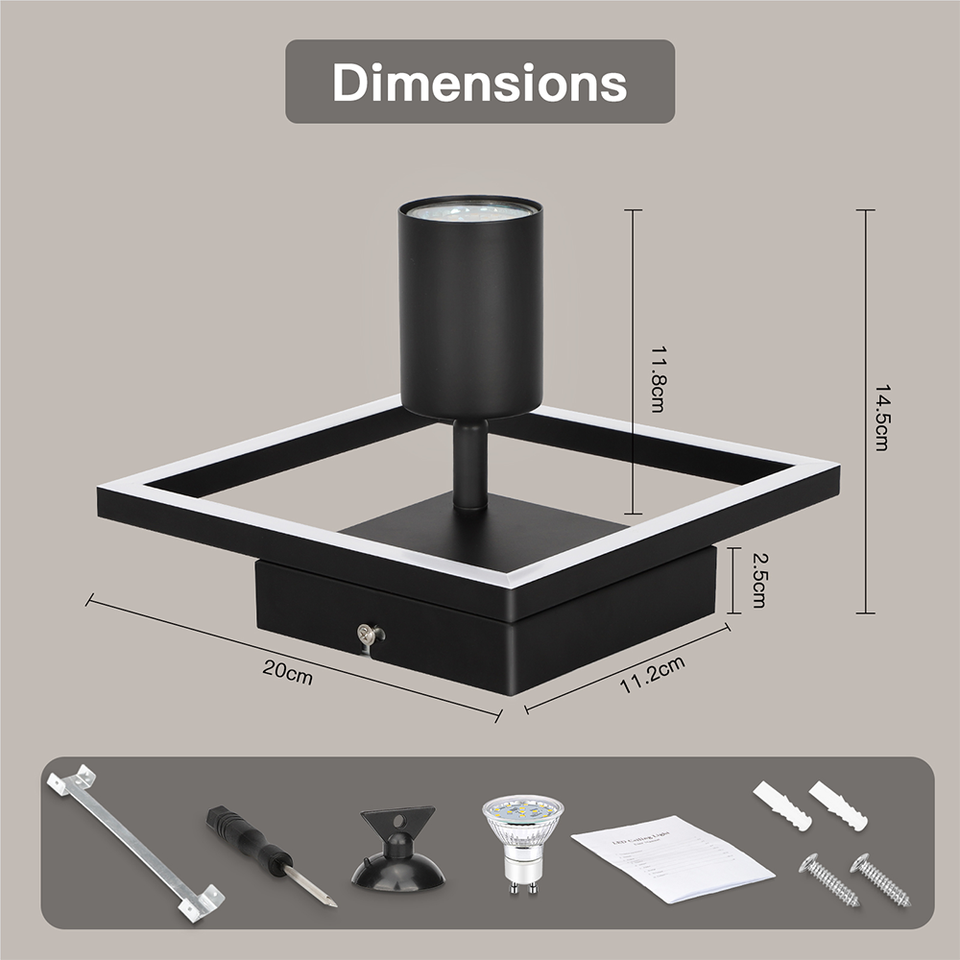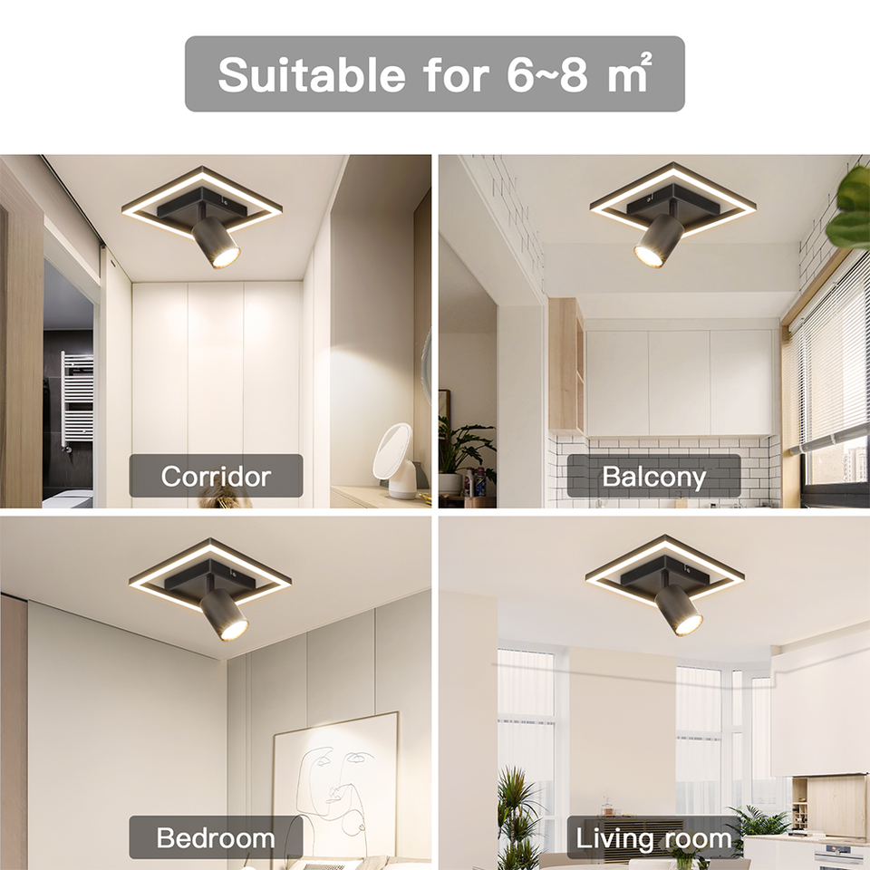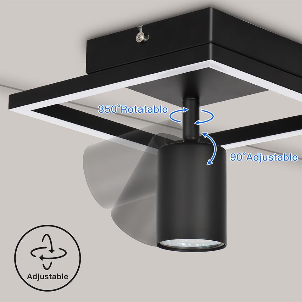 Spot de plafond GU10 personnalisable, design moderne et minimaliste, cadre noir, panneau lumineux 13W, spot 5W, 4000K, pour salon, chambre à coucher