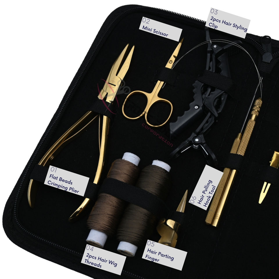 Nom du produit:Ensemble d'accessoires et d'outils personnalisables pour extensions de cheveux dorés
