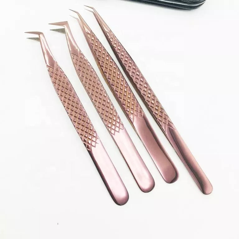 Kit d'outils de beauté à épiler en or personnalisable avec 6 pinces d'extension de cils en acier inoxydable