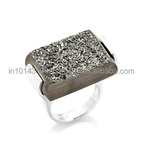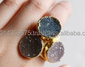 Bagues Druzy plaquées or personnalisables, bijoux de mode pour fiançailles, style classique, Coszcalt Exports, modèle DDF002, exportateurs