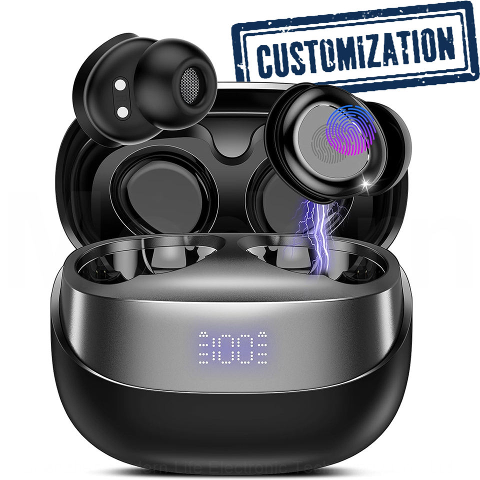 Écouteurs intra-auriculaires sans fil HE-029A personnalisables pour le sommeil, avec bobine dynamique à film de titane de 6 mm et affichage numérique de la puissance