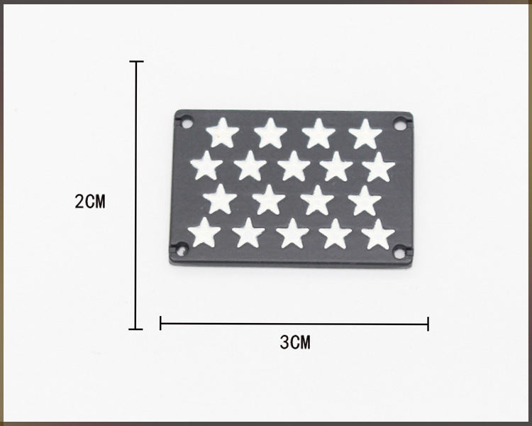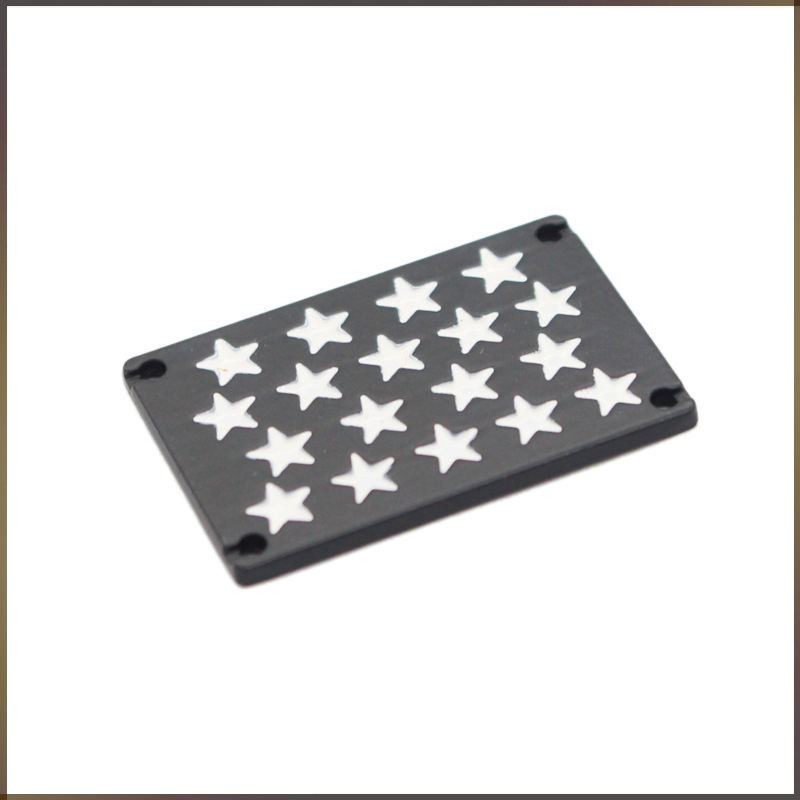 Plaque décorative rectangulaire personnalisable en alliage de zinc noir cousue à la main avec étoiles blanches pour sangles et accessoires de bagages