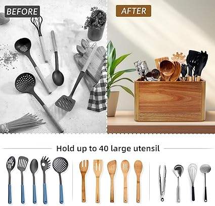 Ustensile de cuisine plus grand en acacia fait à la main personnalisable pour fourchette et cuillère Boîte de rangement en bois