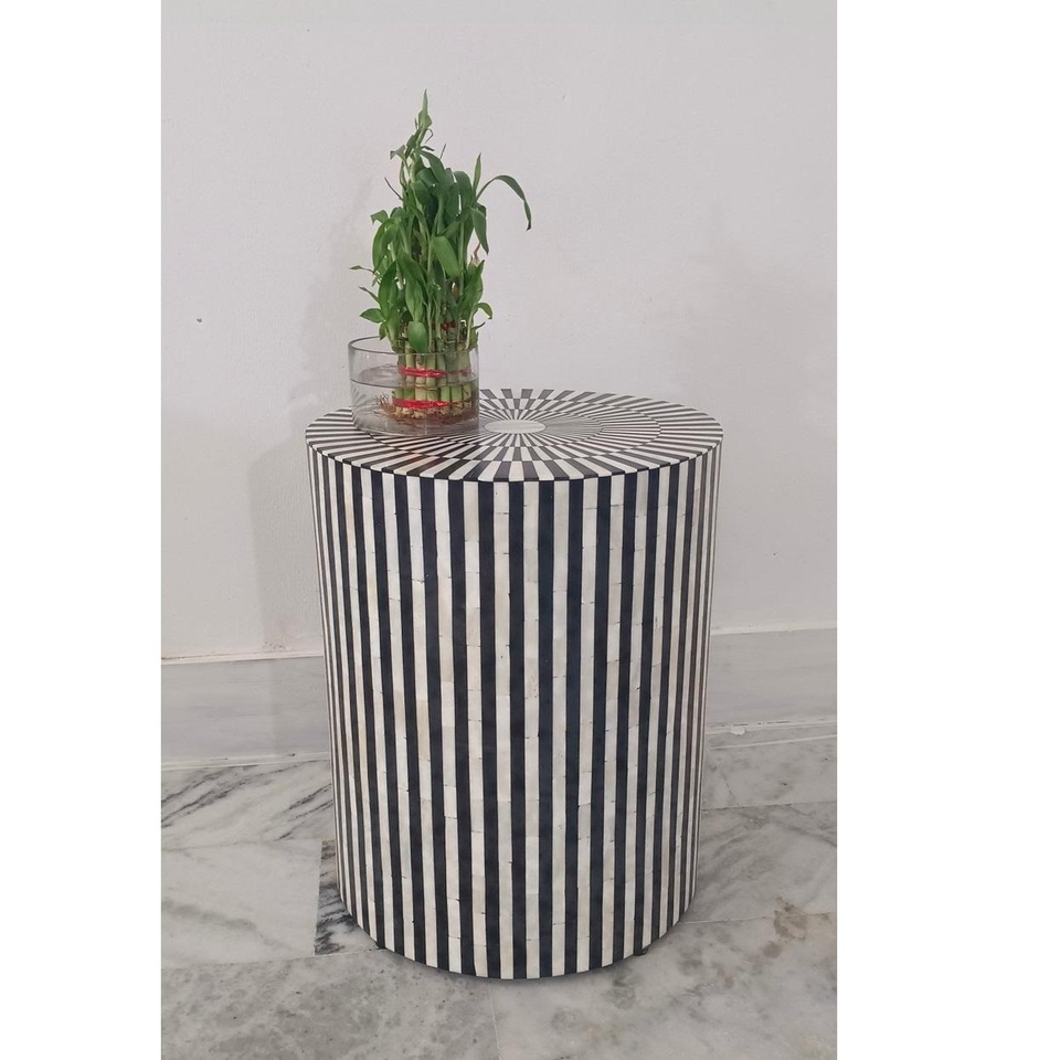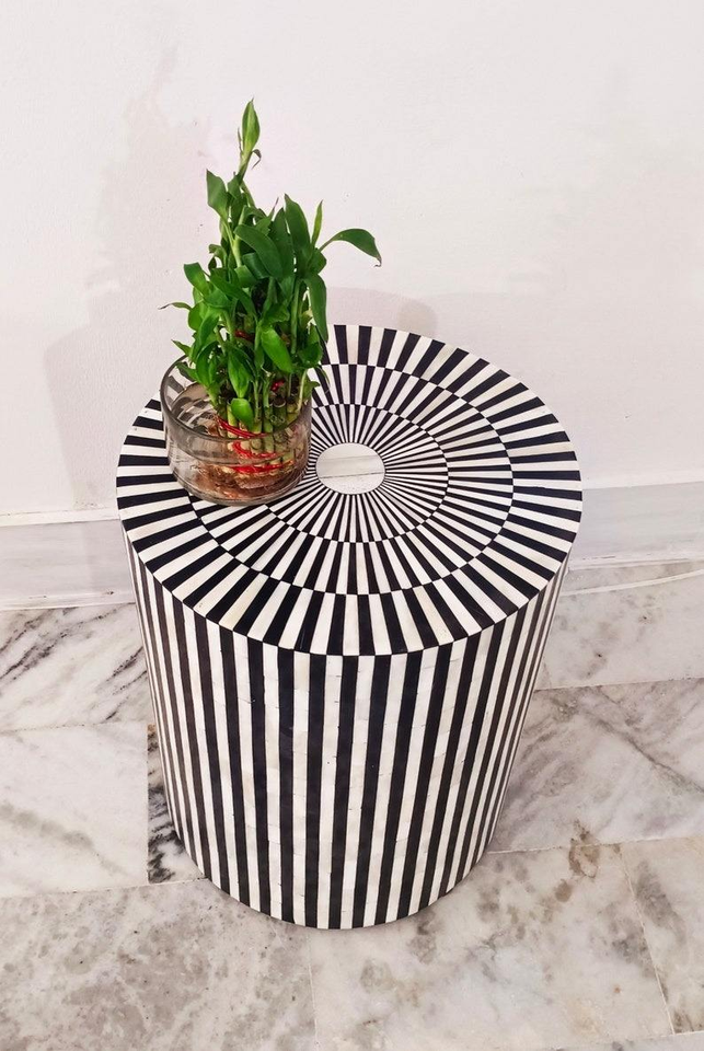 Table console et tabouret d'appoint en incrustation d'os faits à la main personnalisables pour salon, bureau, hôtels, entrée, chambre à coucher, extérieur, appartement