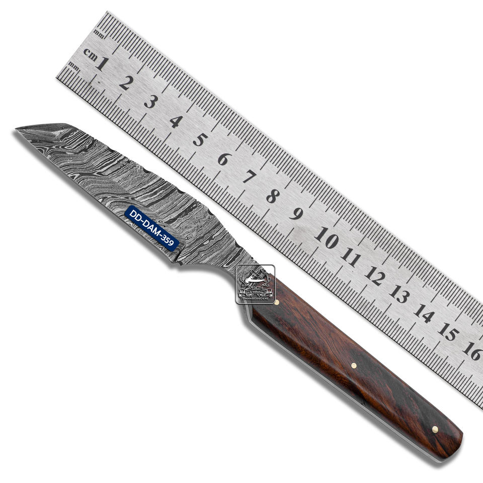 Couteau de chasse personnalisable fait main DD-DAM-358 lame en acier damas avec manche en palissandre exotique et étui en cuir gaufré
