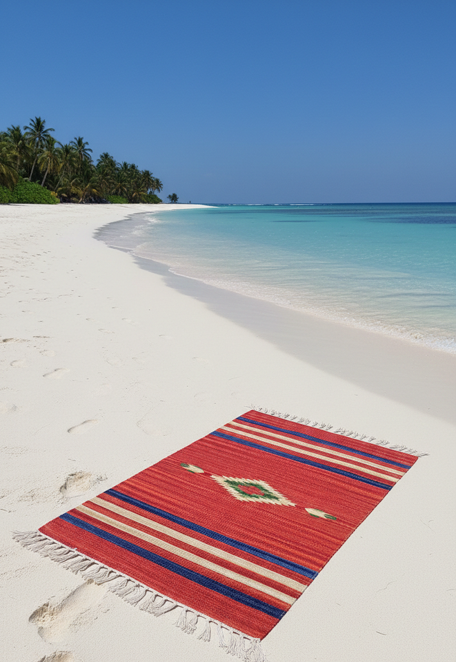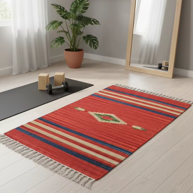 Tapis en coton moderne personnalisable fait main, motif floral, 950g/m², rectangulaire, avec envers réversible – Lavable en machine, idéal pour l'exercice et les voyages
