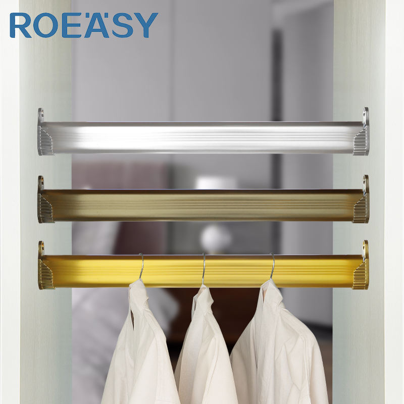 Tringles à vêtements ovales en aluminium finition champagne personnalisables pour penderie