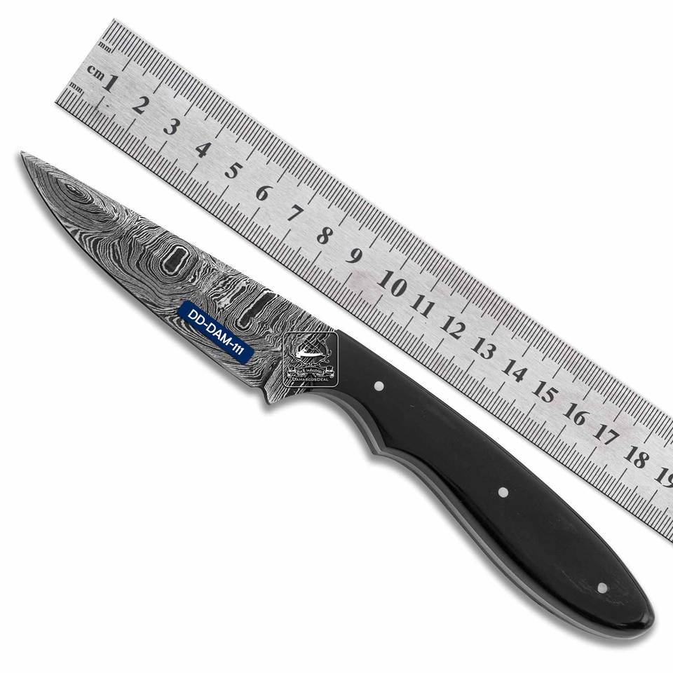 Couteau de chasse personnalisable de haute qualité fait à la main DD-DAM-107 acier damas manche en corne de buffle gaine en cuir gravée au laser OEM