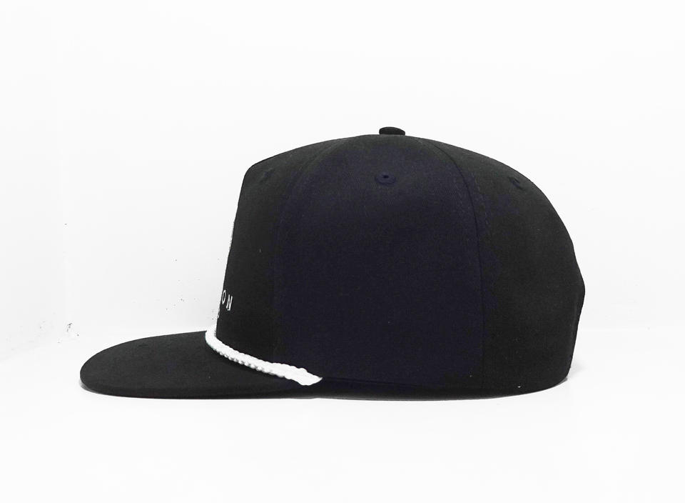 Chapeau Snapback noir personnalisable avec corde, style classique et énergique pour adultes, fabriqué au Vietnam.