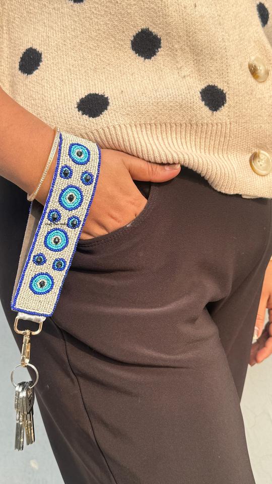 Porte-clés personnalisé en coton écologique fait main de haute qualité avec des perles et des paillettes, brodé pour une fête