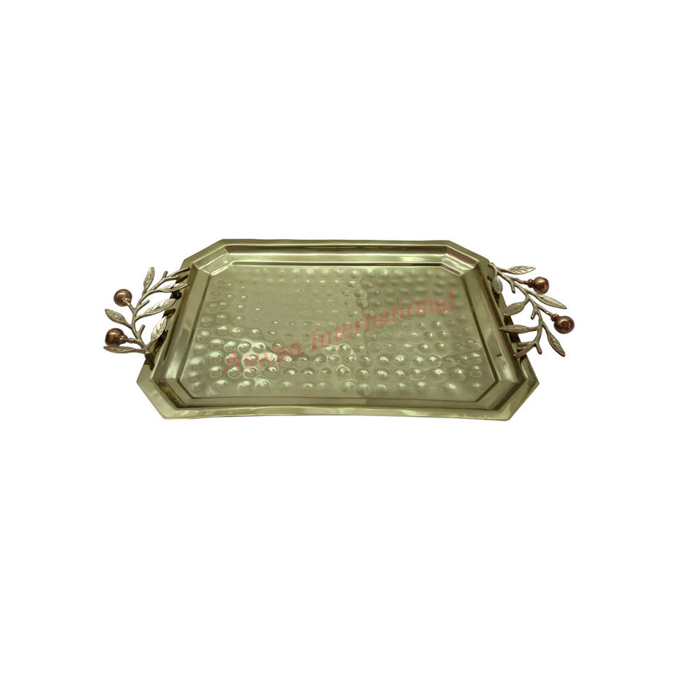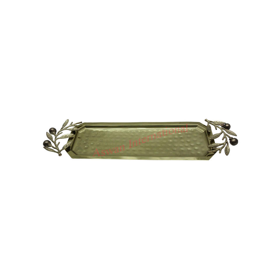 Plateau de service en métal martelé de forme ovale de haute qualité personnalisable Vaisselle d'art de conception de fleur écologique à vendre