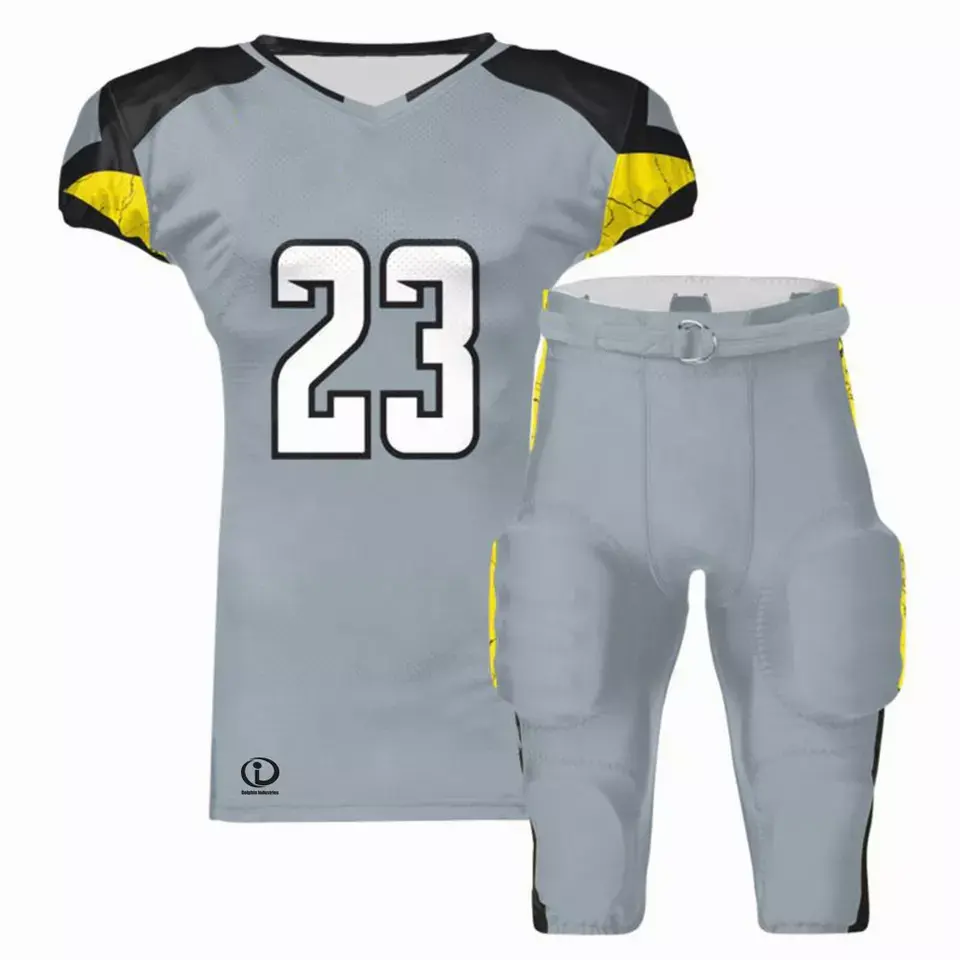 Uniforme de football américain personnalisable de haute qualité, maillot et pantalon, design personnalisé, respirant, 100% polyester, manches courtes pour équipe