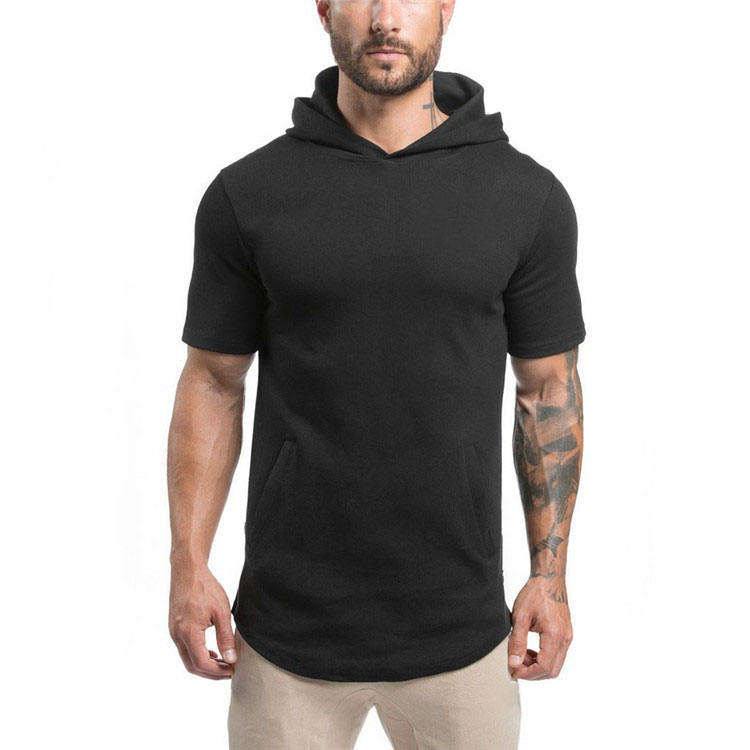 T-shirts à capuche pour hommes personnalisables de haute qualité, à manches courtes, sportifs et décontractés, séchage rapide pour la course à pied et le fitness