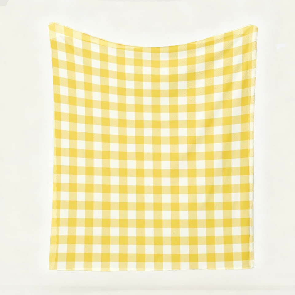 Couverture de vacances personnalisable en polaire à carreaux jaune pastel vichy couverture en flanelle douce, chaude et floue