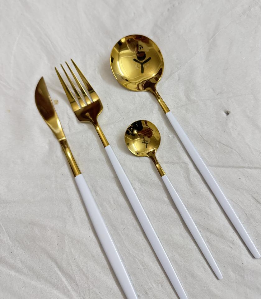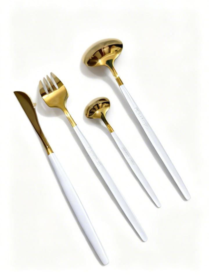 Ensemble de couverts à manche blanc mat